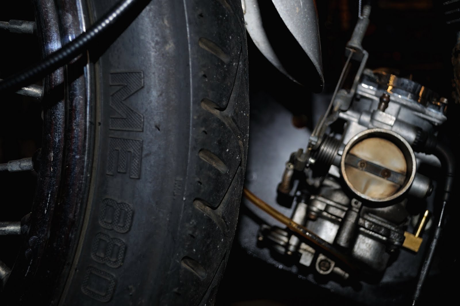 I don't know why I like this...but I do. My CV carburetor....dangling by a thread.