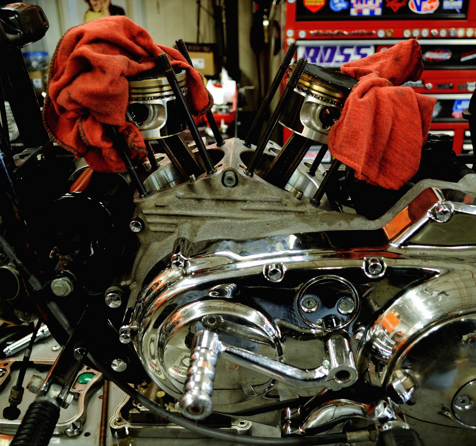 While I was inspecting the rest of the engine, I noticed a spot on the rear cylinder that appeared to have a "huffing" mark on the cases where the cylinder met up with the case. So I asked Shannon to check it out and replace the base gaskets. Yes, I've been there with a blown base gasket before. Shannon pulled the cylinders and he felt there hadn't been a problem there. You know, that's exactly my luck. Had I told him to leave it alone, it would have been a blow out for sure!